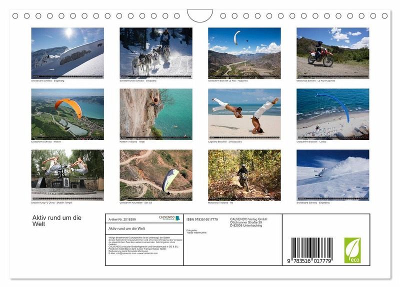 QUALITÄT - Hochwertiger Fotokalender mit 12 wunderschönen Motiven auf lichtbeständigem Bilderdruckpapier, robuste Spiralbindung mit Aufhängebügel.NACHHALTIG - deutliche Abfallreduzierung durch bedarfsgerechte Einzelstückfertigung, umweltfreundliches FSC-zertifiziertes Papier, Produktion in Deutschland, klimabewusste Logistik.PERFEKTES GESCHENK - Kalender für Freunde und Familie, für Kinder und Erwachsene, jung und alt, zu Weihnachten, Geburtstag oder zwischendurch.VIELFALT - Bildkalender in verschiedenen Formaten, z.B. DIN A5, DIN A4, DIN A3 sowie DIN A2. ObNaturmotiv, Gemälde oder Fotos, ideal für ein persönliches Wohlfühlambiente.Outdoor Sport auf den 3 Kontinenten Südamerika, Europa, Asien von Autor(in): Tobias Indermuehle