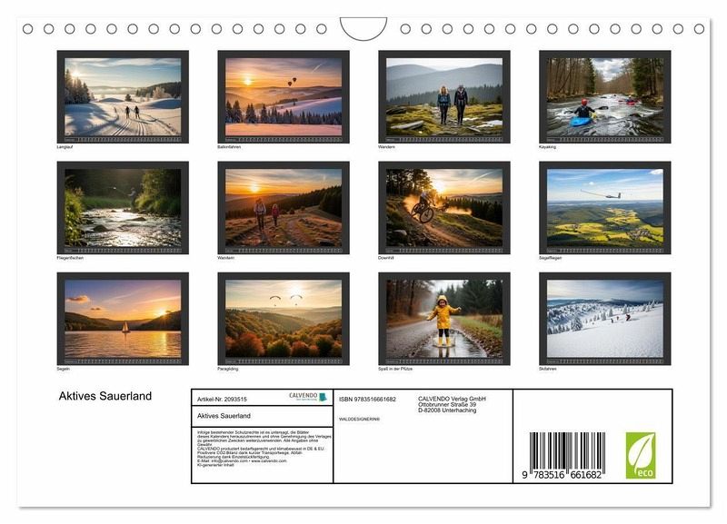 Dieser Kalender ist mehr als nur eine Monatsübersicht; er ist eine Einladung, die atemberaubende Vielfalt des Sauerlands aktiv zu erleben. Auf zwölf hochwertigen Bildern fangen wir die schönsten Momente der Region ein - vom goldenen Herbst auf den Wanderwegen bis zum funkelnden Winter auf den verschneiten Hängen.