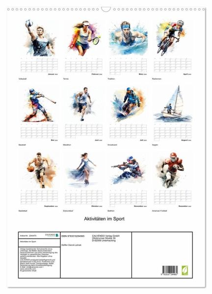 QUALITÄT - Hochwertiger Fotokalender mit 12 wunderschönen Motiven auf lichtbeständigem Bilderdruckpapier, robuste Spiralbindung mit Aufhängebügel.NACHHALTIG - deutliche Abfallreduzierung durch bedarfsgerechte Einzelstückfertigung, umweltfreundliches FSC-zertifiziertes Papier, Produktion in Deutschland, klimabewusste Logistik.PERFEKTES GESCHENK - Kalender für Freunde und Familie, für Kinder und Erwachsene, jung und alt, zu Weihnachten, Geburtstag oder zwischendurch.VIELFALT - Bildkalender in verschiedenen Formaten, z.B. DIN A5, DIN A4, DIN A3 sowie DIN A2. Ob Naturmotiv, Gemälde oder Fotos, ideal für ein persönliches Wohlfühlambiente.Sportliche Aktivitäten sind körperliche Betätigungen, die auf Spaß, Fitness und Wettbewerb abzielen. von Autor(in): Steffen Gierok ; Magik Artist Design