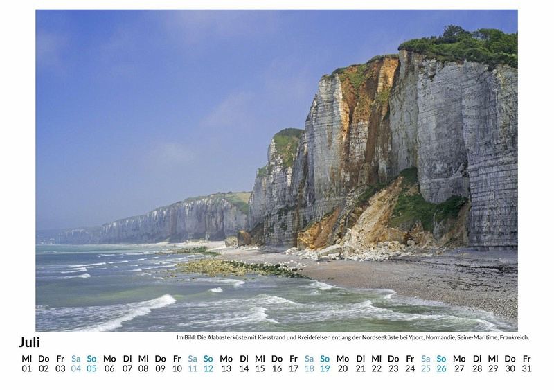 Entdecken Sie die atemberaubende Schönheit der Alabasterküste mit unserem exklusiven Wandkalender! Lassen Sie sich Monat für Monat von 12 sorgfältig ausgewählten Motiven der malerischen Küstenlandschaften Nordfrankreichs verzaubern. Die beeindruckenden Klippen und das türkisfarbene Meer bringen Urlaubsfeeling direkt in Ihr Zuhause. Gedruckt auf hochwertigem, lichtbeständigem Bilderdruckpapier, bleibt die Brillanz der Farben das ganze Jahr über erhalten. Nachhaltigkeit liegt uns am Herzen: Unsere Kalender werden in Deutschland auf FSC-zertifiziertem Papier produziert. Gönnen Sie sich oder Ihren Liebsten ein Stück Natur und Eleganz - perfekt für jedes Zuhause oder Büro! Hochwertig Erleben Sie ein Jahr voller Eleganz mit unserem Premium-Fotokalender. Jedes der 12 Motive ist auf hochwertigem, lichtbeständigem Bilderdruckpapier gedruckt, um die Lebendigkeit jedes Bildes zu bewahren. Die robuste Spiralbindung gewährleistet Langlebigkeit und einfache Handhabung. Nachhaltig Unser Engagement für die Umwelt spiegelt sich in jedem Exemplar wider. Durch die Produktion auf Abruf reduzieren wir signifikant unseren Abfall. Wir verwenden ausschließlich umweltfreundliches, FSC-zertifiziertes Papier. Stolz gefertigt in Deutschland, achten wir bei unserer Logistik auf Klimaschutz, um unseren ökologischen Fußabdruck zu minimieren. Das ideale Geschenk Dieser Kalender ist das perfekte Präsent für jeden Anlass - ob Weihnachten, Geburtstage oder einfach als liebevolle Aufmerksamkeit zwischendurch. Geeignet für Freunde, Familie, Kinder und Erwachsene gleichermaßen, bereichert er jedes Zuhause mit seiner Vielfalt und Schönheit, unabhängig vom Alter der Beschenkten.