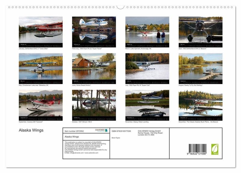 PREMIUM COLLECTION - Brilliant photo calendar with 12 beautiful motifs, high-gloss art print in museum quality.QUALITY - high-quality materials, sturdy back cover with 2 innovative insert pockets for optimum presentation on the wall.SUSTAINABLE - significant reduction in waste thanks to customised one-off production, environmentally friendly FSC-certified paper, production in Germany, climate-conscious logistics.PERFECT GIFT - calendars for friends and family, for children and adults, young and old, for Christmas, birthdays or in between.Classic Floatplanes Flying in Alaska von Autor(in): Brent Taylor