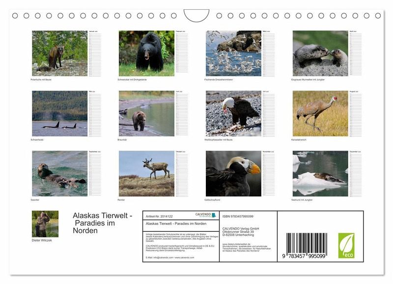 QUALITÄT - Hochwertiger Fotokalender mit 12 wunderschönen Motiven auf lichtbeständigem Bilderdruckpapier, robuste Spiralbindung mit Aufhängebügel.NACHHALTIG - deutliche Abfallreduzierung durch bedarfsgerechte Einzelstückfertigung, umweltfreundliches FSC-zertifiziertes Papier, Produktion in Deutschland, klimabewusste Logistik.PERFEKTES GESCHENK - Kalender für Freunde und Familie, für Kinder und Erwachsene, jung und alt, zu Weihnachten, Geburtstag oder zwischendurch.VIELFALT - Bildkalender in verschiedenen Formaten, z.B. DIN A5, DIN A4, DIN A3 sowie DIN A2. Ob Naturmotiv, Gemälde oder Fotos, ideal für ein persönliches Wohlfühlambiente.Wunderschöne, spektakuläre und emotionale Tieraufnahmen, die beweisen: für Naturliebhaber ist Alaska das Paradies des Nordens! von Autor(in): Dieter Wilczek