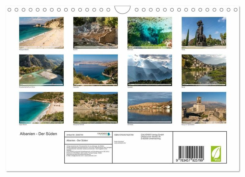 QUALITÄT - Hochwertiger Fotokalender mit 12 wunderschönen Motiven auf lichtbeständigem Bilderdruckpapier, robuste Spiralbindung mit Aufhängebügel.NACHHALTIG - deutliche Abfallreduzierung durch bedarfsgerechte Einzelstückfertigung, umweltfreundliches FSC-zertifiziertes Papier, Produktion in Deutschland, klimabewusste Logistik.PERFEKTES GESCHENK - Kalender für Freunde und Familie, für Kinder und Erwachsene, jung und alt, zu Weihnachten, Geburtstag oder zwischendurch.VIELFALT - Bildkalender in verschiedenen Formaten, z.B. DIN A5, DIN A4, DIN A3 sowie DIN A2. Ob Naturmotiv, Gemälde oder Fotos, ideal für ein persönliches Wohlfühlambiente.Der faszinierende Süden Albaniens in einem Kalender vom Reisefotografen Peter Schickert. von Autor(in): Peter Schickert
