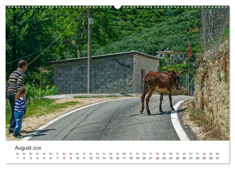 August: Ein Esel auf der Strasse im Tomorr-Gebiet - und ein wachsamer Vater bei der Verkehrserziehung seiner Tochter.