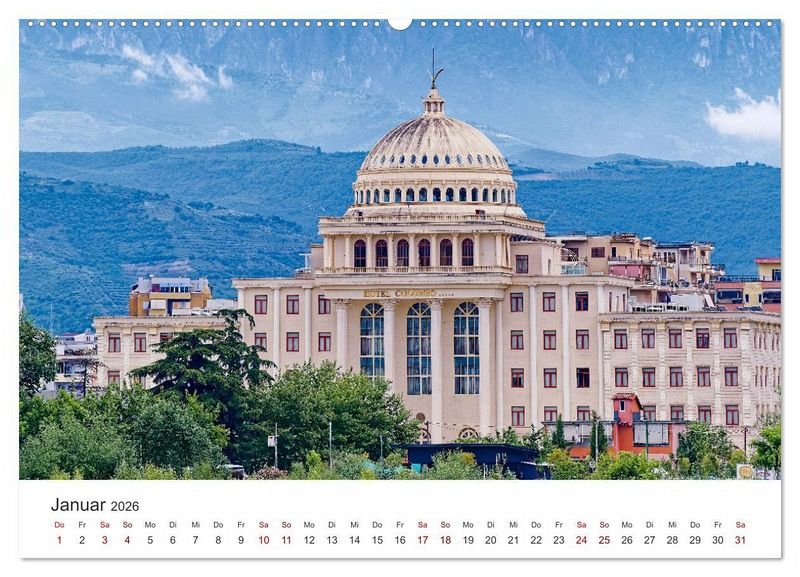 Januar: Bunter Stilmix in der Architektur des Hotel Colombo in Berat in Zentral-Albanien