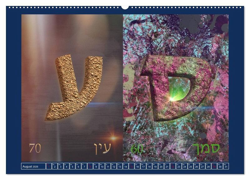 Dieser qualitativ hochwertige Kalender gehört zur exklusiven CALVENDO Gold-Edition. Eine kunstvolle digitale Aufbereitung der hebräischen Buchstaben mit den Zahlenwerten. Zwei Lettern pro Seite mit den entsprechenden Finalbuchstaben, Zahlenwerten und ausgeschriebenen Lettern. Ein Muss für jeden Hebräisch Lernenden und Israel Liebhaber.