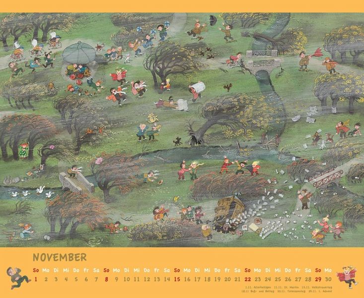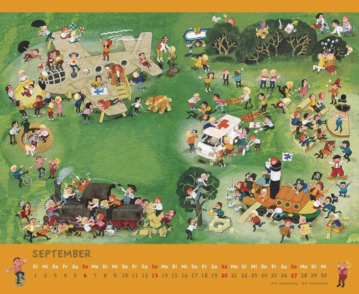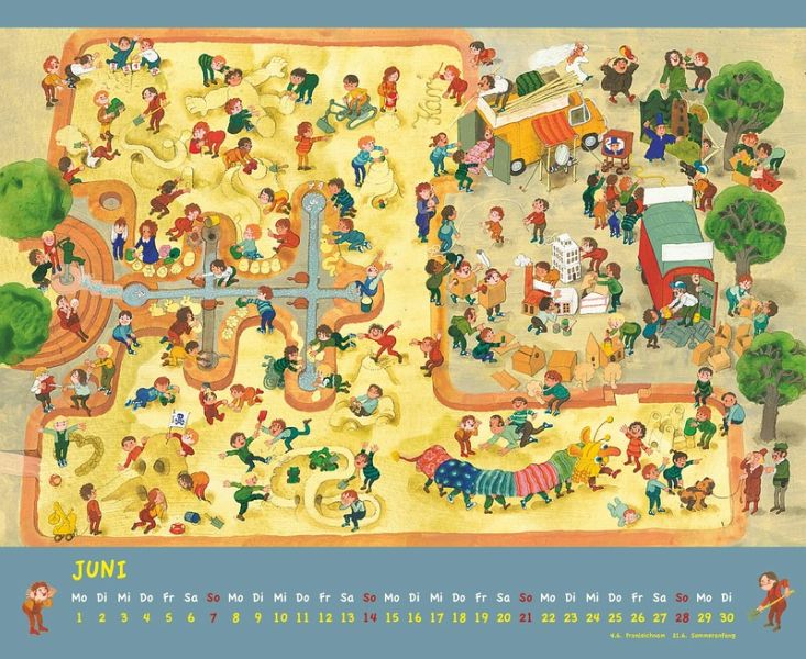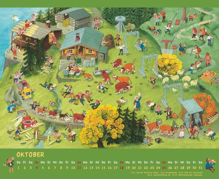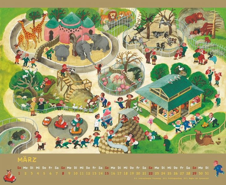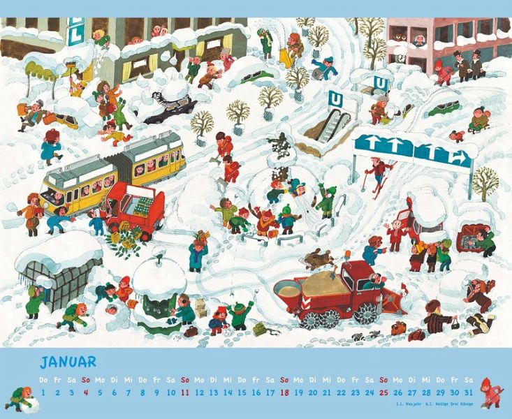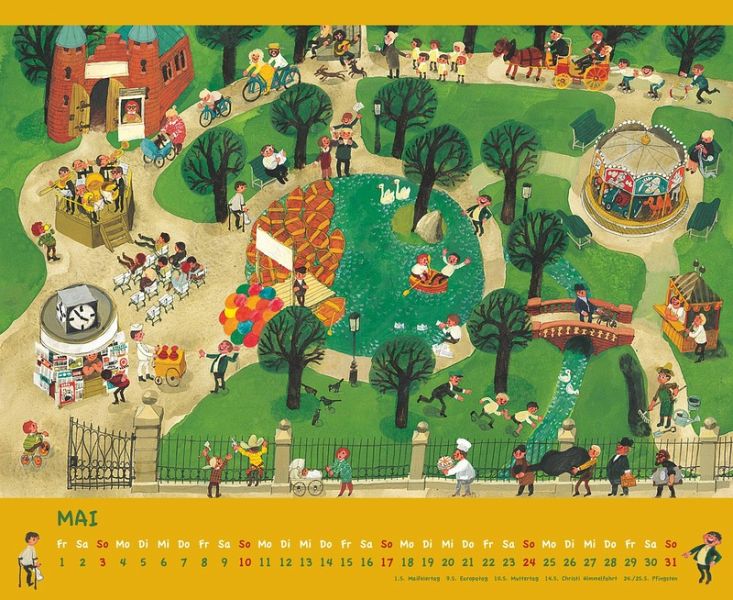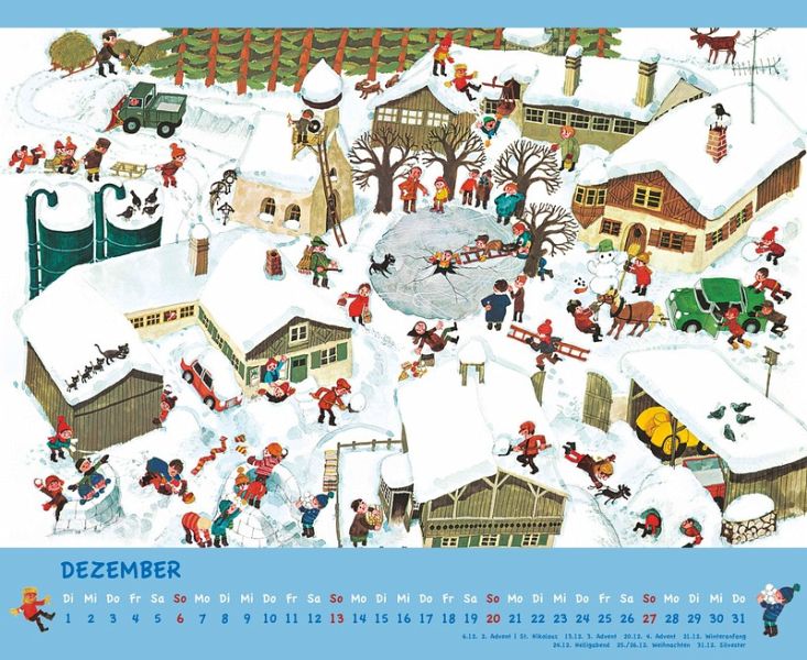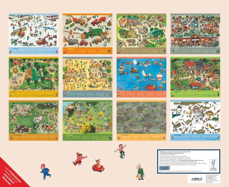 Wer kennt sie nicht: Ali Mitgutschs Wimmelbilder mit Szenen aus Stadt und Land zu jeder Jahreszeit. Seit Generationen haben Mitgutschs Wimmelbücher von Ravensburger einen festen Platz in jedem Kinderzimmer. Dank des DUMONT Kalenders kann man sie auch an die Wand hängen!