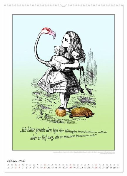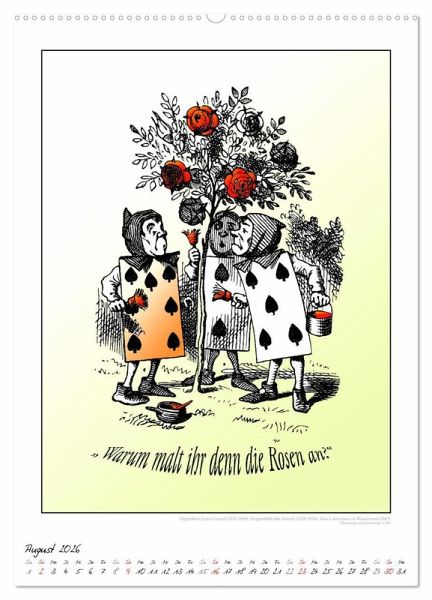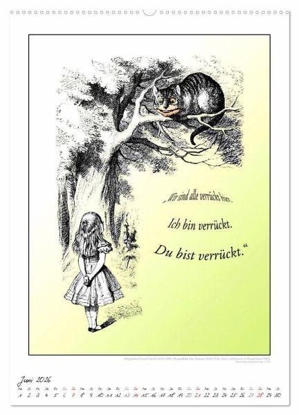 Traumhafte Abenteuer in einem Wunderland. Nach ihrem Fall in den Kaninchenbau begegnet Alice der Grinsekatze, dem Hutmacher, einer blauen Raupe, der Herzkönigin ... Ein Literaturkalender mit Auszügen aus Lewis Carrolls humorvollem Klassiker.