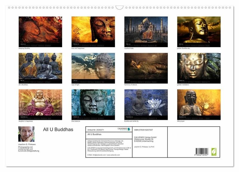 QUALITÄT - Hochwertiger Fotokalender mit 12 wunderschönen Motiven auf lichtbeständigem Bilderdruckpapier, robuste Spiralbindung mit Aufhängebügel.NACHHALTIG - deutliche Abfallreduzierung durch bedarfsgerechte Einzelstückfertigung, umweltfreundliches FSC-zertifiziertes Papier, Produktion in Deutschland, klimabewusste Logistik.PERFEKTES GESCHENK - Kalender für Freunde und Familie, für Kinder und Erwachsene, jung und alt, zu Weihnachten, Geburtstag oder zwischendurch.VIELFALT - Bildkalender in verschiedenen Formaten, z.B. DIN A5, DIN A4, DIN A3 sowie DIN A2. Ob Naturmotiv, Gemälde oder Fotos, ideal für ein persönliches Wohlfühlambiente.Bilder von Buddhas in kunstvoller Bildgestaltung von Autor(in): Jo.PinX