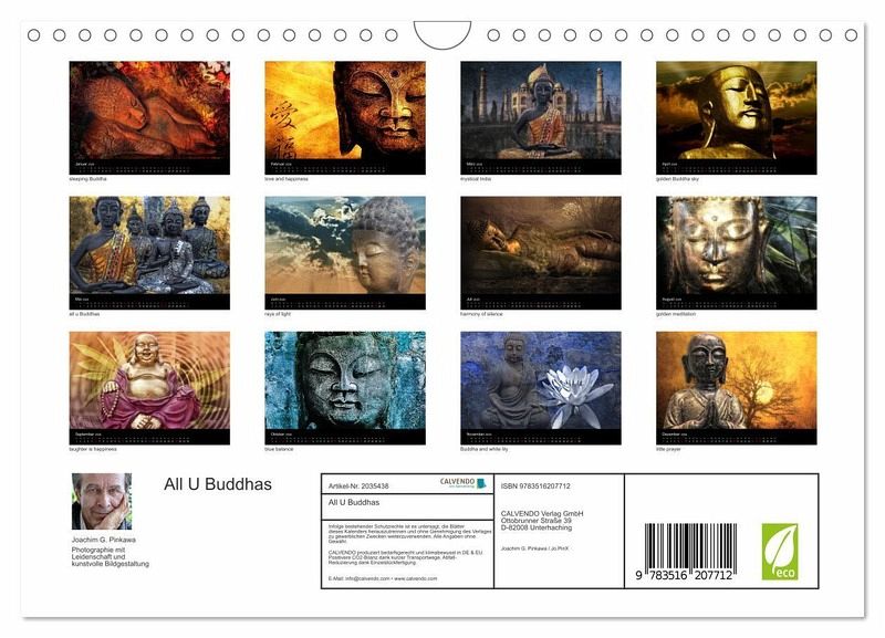 QUALITÄT - Hochwertiger Fotokalender mit 12 wunderschönen Motiven auf lichtbeständigem Bilderdruckpapier, robuste Spiralbindung mit Aufhängebügel.NACHHALTIG - deutliche Abfallreduzierung durch bedarfsgerechte Einzelstückfertigung, umweltfreundliches FSC-zertifiziertes Papier, Produktion in Deutschland, klimabewusste Logistik.PERFEKTES GESCHENK - Kalender für Freunde und Familie, für Kinder und Erwachsene, jung und alt, zu Weihnachten, Geburtstag oder zwischendurch.VIELFALT - Bildkalender in verschiedenen Formaten, z.B. DIN A5, DIN A4, DIN A3 sowie DIN A2. Ob Naturmotiv, Gemälde oder Fotos, ideal für ein persönliches Wohlfühlambiente.Bilder von Buddhas in kunstvoller Bildgestaltung von Autor(in): Jo.PinX