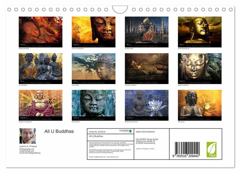QUALITÄT - Hochwertiger Fotokalender mit 12 wunderschönen Motiven auf lichtbeständigem Bilderdruckpapier, robuste Spiralbindung mit Aufhängebügel.NACHHALTIG - deutliche Abfallreduzierung durch bedarfsgerechte Einzelstückfertigung, umweltfreundliches FSC-zertifiziertes Papier, Produktion in Deutschland, klimabewusste Logistik.PERFEKTES GESCHENK - Kalender für Freunde und Familie, für Kinder und Erwachsene, jung und alt, zu Weihnachten, Geburtstag oder zwischendurch.VIELFALT - Bildkalender in verschiedenen Formaten, z.B. DIN A5, DIN A4, DIN A3 sowie DIN A2. Ob Naturmotiv, Gemälde oder Fotos, ideal für ein persönliches Wohlfühlambiente.Bilder von Buddhas in kunstvoller Bildgestaltung von Autor(in): Jo.PinX