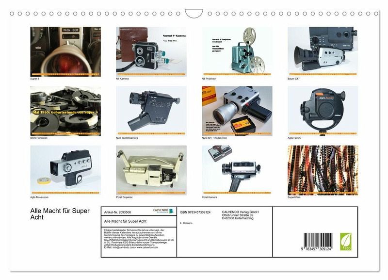 QUALITÄT - Hochwertiger Fotokalender mit 12 wunderschönen Motiven auf lichtbeständigem Bilderdruckpapier, robuste Spiralbindung mit Aufhängebügel.NACHHALTIG - deutliche Abfallreduzierung durch bedarfsgerechte Einzelstückfertigung, umweltfreundliches FSC-zertifiziertes Papier, Produktion in Deutschland, klimabewusste Logistik.PERFEKTES GESCHENK - Kalender für Freunde und Familie, für Kinder und Erwachsene, jung und alt, zu Weihnachten, Geburtstag oder zwischendurch.VIELFALT - Bildkalender in verschiedenen Formaten, z.B. DIN A5, DIN A4, DIN A3 sowie DIN A2. Ob Naturmotiv, Gemälde oder Fotos, ideal für ein persönliches Wohlfühlambiente.Super 8 Kalender von Autor(in): Enrico Corsano