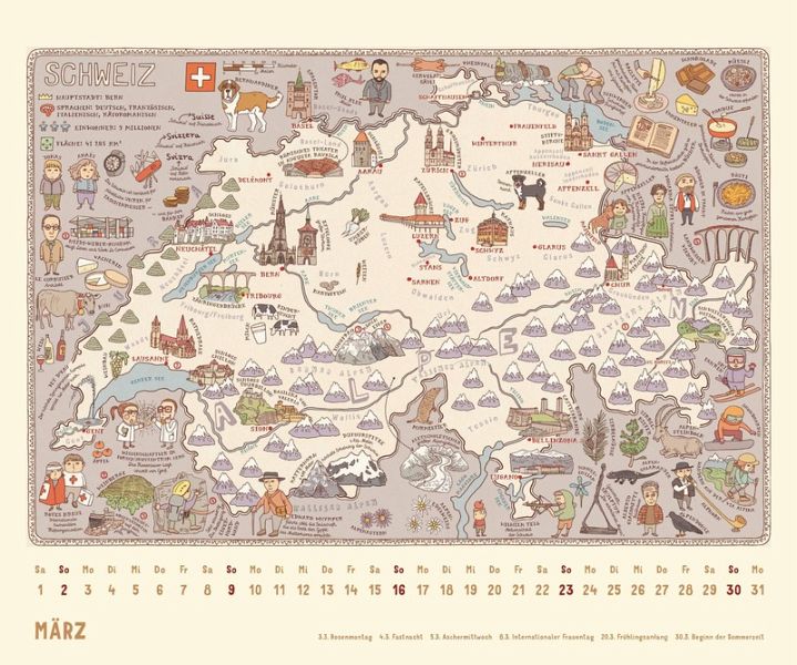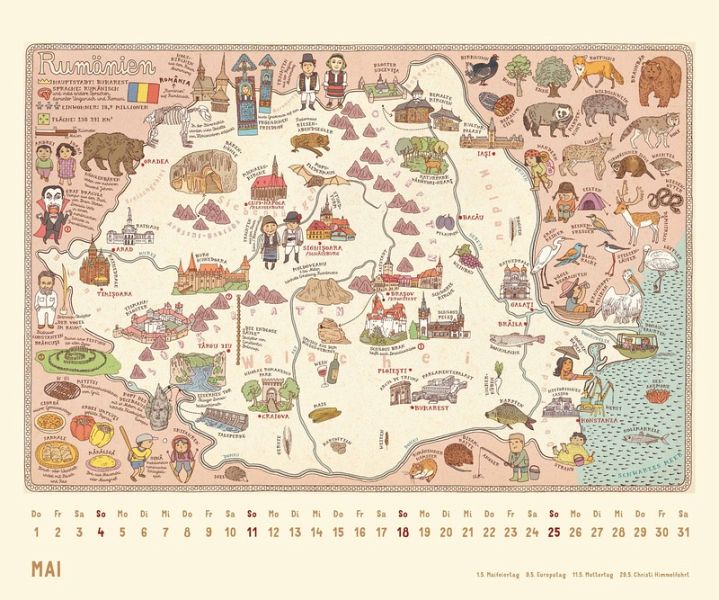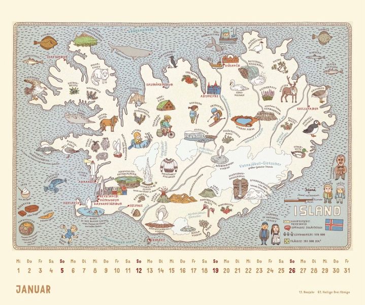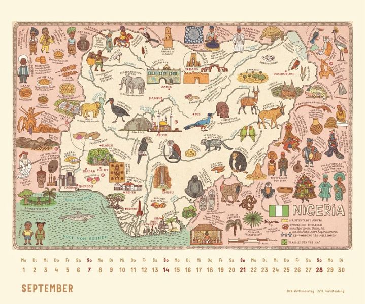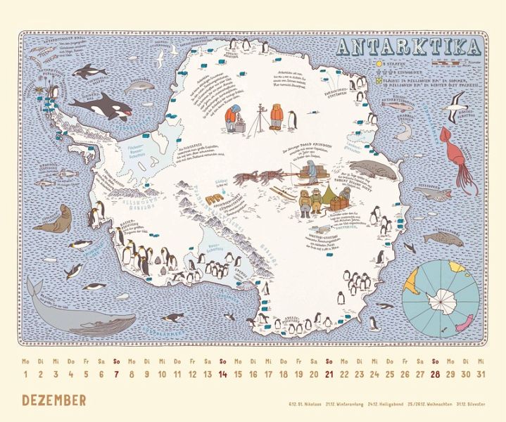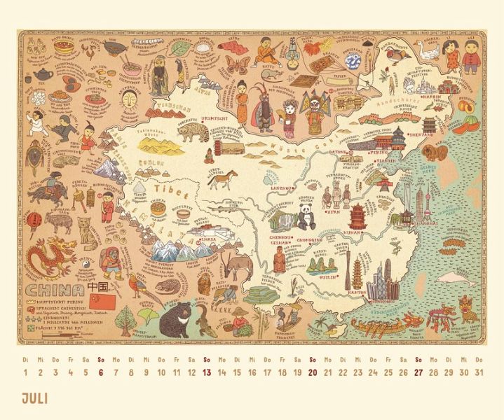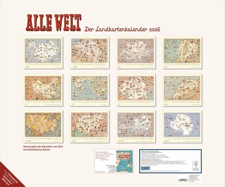 - 12 prachtvoll illustrierte Landkarten- Nach dem Weltbestseller-Atlas- Für Klein und Groß- Der etwas andere Atlas im Kalenderformat- 12 brillant gedruckte Kalenderblätter- Mit übersichtlich gestaltetem Kalendarium- Mit allen wichtigen Feiertagen- Stabile Spiralbindung mit einem Aufhänger