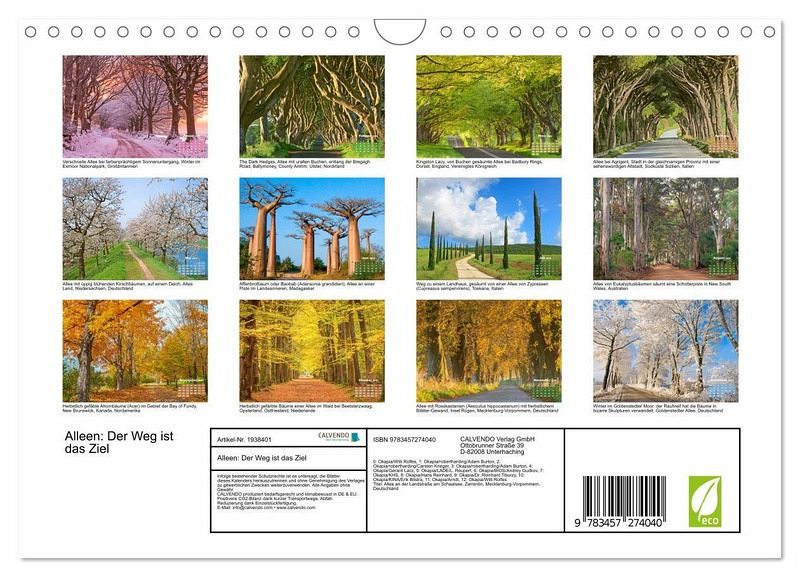 QUALITÄT - Hochwertiger Fotokalender mit 12 wunderschönen Motiven auf lichtbeständigem Bilderdruckpapier, robuste Spiralbindung mit Aufhängebügel.NACHHALTIG - deutliche Abfallreduzierung durch bedarfsgerechte Einzelstückfertigung, umweltfreundliches FSC-zertifiziertes Papier, Produktion in Deutschland, klimabewusste Logistik.PERFEKTES GESCHENK - Kalender für Freunde und Familie, für Kinder und Erwachsene, jung und alt, zu Weihnachten, Geburtstag oder zwischendurch.VIELFALT - Bildkalender in verschiedenen Formaten, z.B. DIN A5, DIN A4, DIN A3 sowie DIN A2. Ob Naturmotiv, Gemälde oder Fotos, ideal für ein persönliches Wohlfühlambiente.Allee: Blätterdächer über Straßen und Wege von Autor(in): CALVENDO Verlag