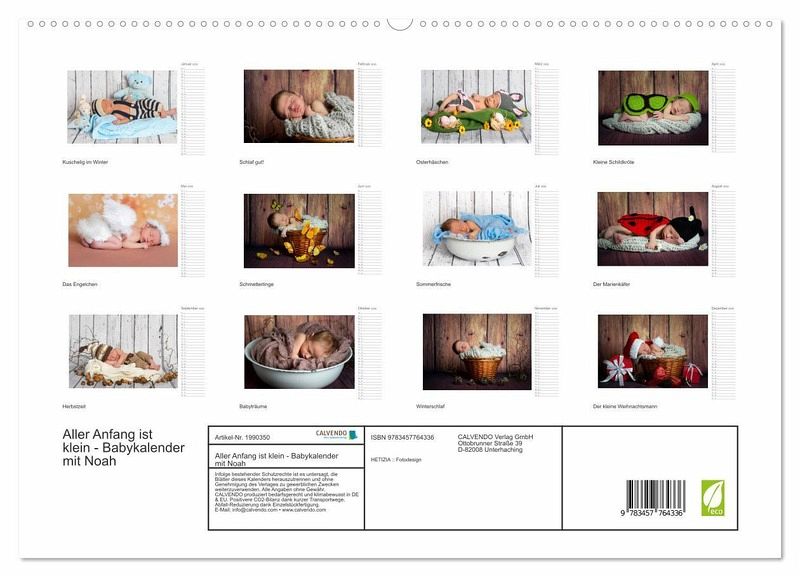 Klitzekleine Zehen, winzige Händchen und eine süße Stupsnase: neugeborene Babys sind wohl das allerschönste auf der ganzen Welt. Mit diesem Kalender, der Ihnen viel Platz für eigene Notizen bietet, führt sie Klein-Noah rund ums Jahr.