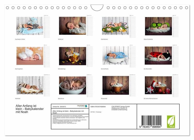 QUALITÄT - Hochwertiger Fotokalender mit 12 wunderschönen Motiven auf lichtbeständigem Bilderdruckpapier, robuste Spiralbindung mit Aufhängebügel.NACHHALTIG - deutliche Abfallreduzierung durch bedarfsgerechte Einzelstückfertigung, umweltfreundliches FSC-zertifiziertes Papier, Produktion in Deutschland, klimabewusste Logistik.PERFEKTES GESCHENK - Kalender für Freunde und Familie, für Kinder und Erwachsene, jung und alt, zu Weihnachten, Geburtstag oder zwischendurch.VIELFALT - Bildkalender in verschiedenen Formaten, z.B. DIN A5, DIN A4, DIN A3 sowie DIN A2. Ob Naturmotiv, Gemälde oder Fotos, ideal für ein persönliches Wohlfühlambiente.Mit Newborn Noah durch das Kalenderjahr von Autor(in): Christina Lesjak