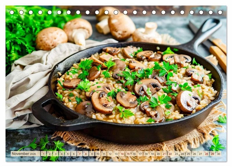November: Arborio-Reis harmoniert perfekt mit herzhaften Pilzen