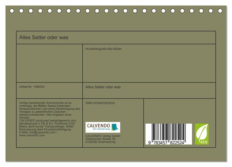 QUALITÄT - Hochwertiger Fotokalender mit 12 wunderschönen Motiven auf lichtbeständigem Bilderdruckpapier, robuste Spiralbindung.NACHHALTIG - deutliche Abfallreduzierung durch bedarfsgerechte Einzelstückfertigung, umweltfreundliches FSC-zertifiziertes Papier, Produktion in Deutschland, klimabewusste Logistik.PERFEKTES GESCHENK - Kalender für Freunde und Familie, für Kinder und Erwachsene, jung und alt, zu Weihnachten, Geburtstag oder zwischendurch.VIELFALT - Bildkalender in verschiedenen Formaten, z.B. DIN A5, DIN A4, DIN A3 sowie DIN A2. Ob Naturmotiv, Gemälde oder Fotos, ideal für ein persönliches Wohlfühlambiente.Der Setter als Wegbegleiter, Familienhund und bester Kumpel. von Autor(in):Beam
