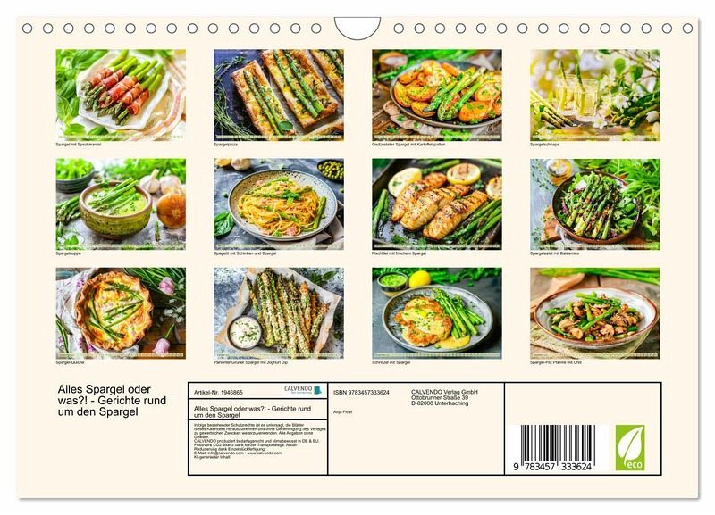 QUALITÄT - Hochwertiger Fotokalender mit 12 wunderschönen Motiven auf lichtbeständigem Bilderdruckpapier, robuste Spiralbindung mit Aufhängebügel.NACHHALTIG - deutliche Abfallreduzierung durch bedarfsgerechte Einzelstückfertigung, umweltfreundliches FSC-zertifiziertes Papier, Produktion in Deutschland, klimabewusste Logistik.PERFEKTES GESCHENK - Kalender für Freunde und Familie, für Kinder und Erwachsene, jung und alt, zu Weihnachten, Geburtstag oder zwischendurch.VIELFALT - Bildkalender in verschiedenen Formaten, z.B. DIN A5, DIN A4, DIN A3 sowie DIN A2. Ob Naturmotiv, Gemälde oder Fotos, ideal für ein persönliches Wohlfühlambiente.Von Klassikern bis zu neuen KI-Ideen: Spargel in seiner ganzen Pracht von Autor(in): Anja Frost