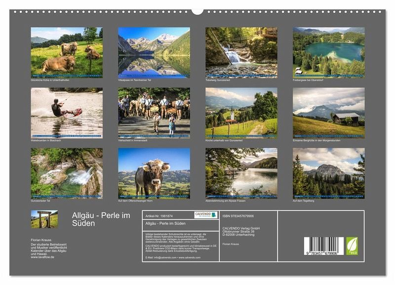 PREMIUM-LINIE - Brillanter Fotokalender mit 12 wunderschönen Motiven, Kunstdruck in Hochglanz in Museumsqualität.QUALITÄT - edle Materialien, stabile Rückwand mit 2 innovativen Einstecktaschen für eine optimale Präsentation an der Wand.NACHHALTIG - deutliche Abfallreduzierung durch bedarfsgerechte Einzelstückfertigung, umweltfreundliches FSC-zertifiziertes Papier, Produktion in Deutschland, klimabewusste Logistik.PERFEKTES GESCHENK - Kalender für Freunde und Familie, für Kinder und Erwachsene, jung und alt, zu Weihnachten, Geburtstag oder zwischendurch.Berge, Seen, unberührte Natur und jede Menge Kühe bietet das Allgäu im Süden Deutschlands. von Autor(in): Florian Krauss