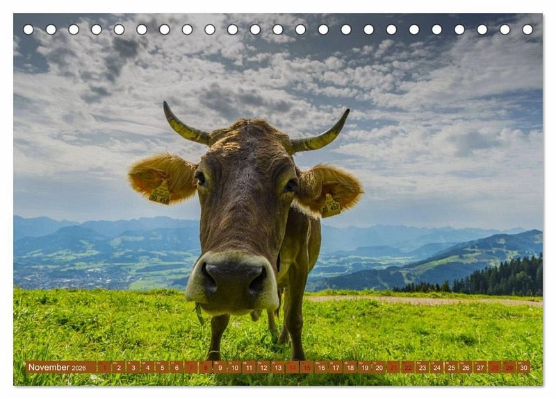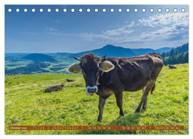 Oktober: Allgäuer Braunvieh, dahinter der Grünten