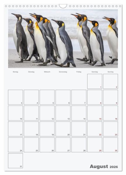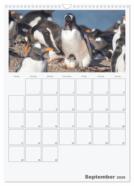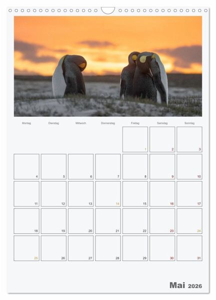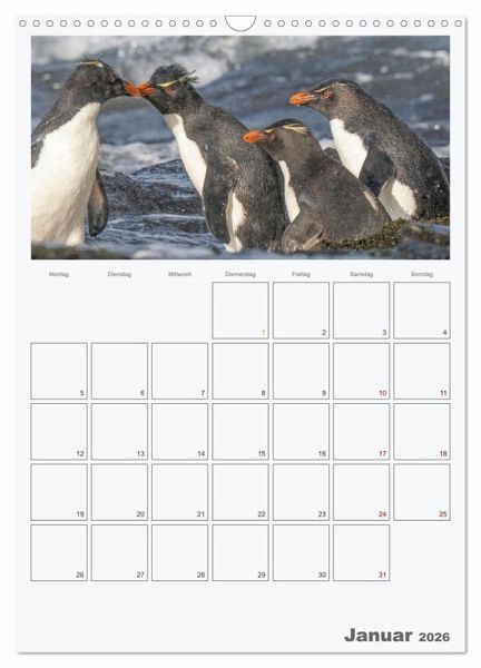 Entdecken Sie Monat für Monat eine neue Szene aus dem Alltag der Pinguine auf den Falklandinseln. Mit viel Geduld und liebevoller Beobachtung wurden diese Aufnahmen eingefangen und ausgewählt. Lassen Sie sich von der charmanten Welt der Pinguine begeistern - der perfekte Kalender für Naturliebhaber,Tierfreunde und natürlich Pinguinfans!