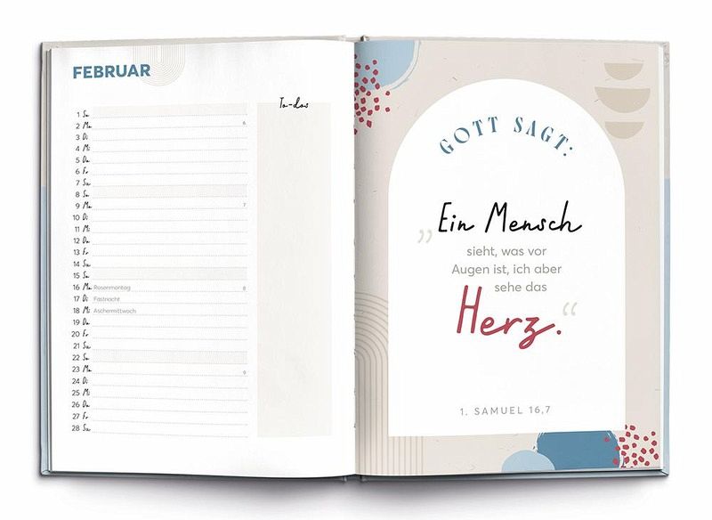 Dieser handliche A5-Kalender bringt mit berührenden Texten von Lyrik bis Prosa göttliche Funken in deinen Alltag. Zwölf monatliche Impulse von Autorinnen wie Annabel Breitkreuz, Rebecca Dernelle-Fischer, Susanne Degenhardt, Katrin Faludi, Melissa C. Feurer, Petra Halfmann, Susanne Ospelkaus, Gertraud Schöpflin, Veronika Smoor, Annette Spratte, Verena Unsin und Ruth Warth laden zum Innehalten ein. Schlicht und modern gestaltet, bietet er viel Platz für eigene Gedanken, Notizen, Gebetsanliegen, Geschenkideen sowie Wunsch- und Bücherlisten. Jede Woche ist übersichtlich auf zwei Seiten dargestellt, und jede Monatsübersicht überrascht mit einer eigenen Farbe. Ein inspirierender Begleiter mit thematischer Tiefe für das ganze Jahr. Nachfolger des FrauenTaschenKalender