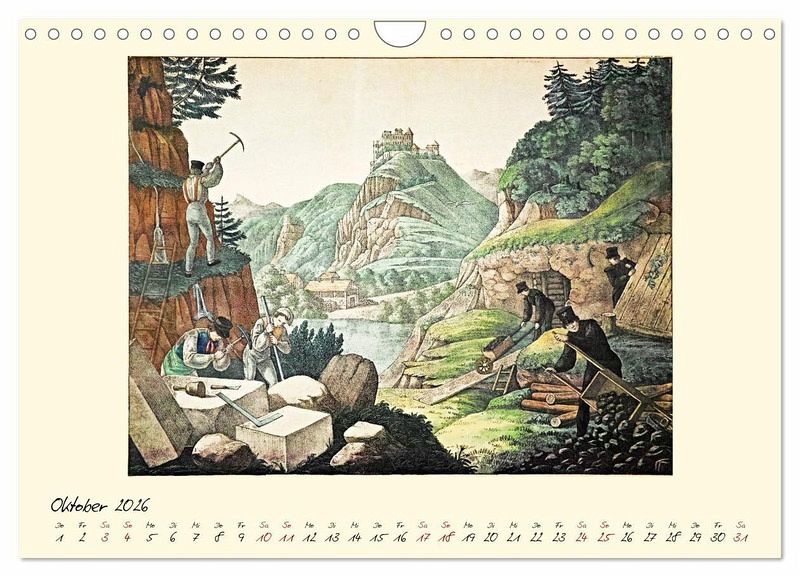 Oktober: Bergwerk mit Steinbruch, Künstler: Carl Wilke (1800-1876)