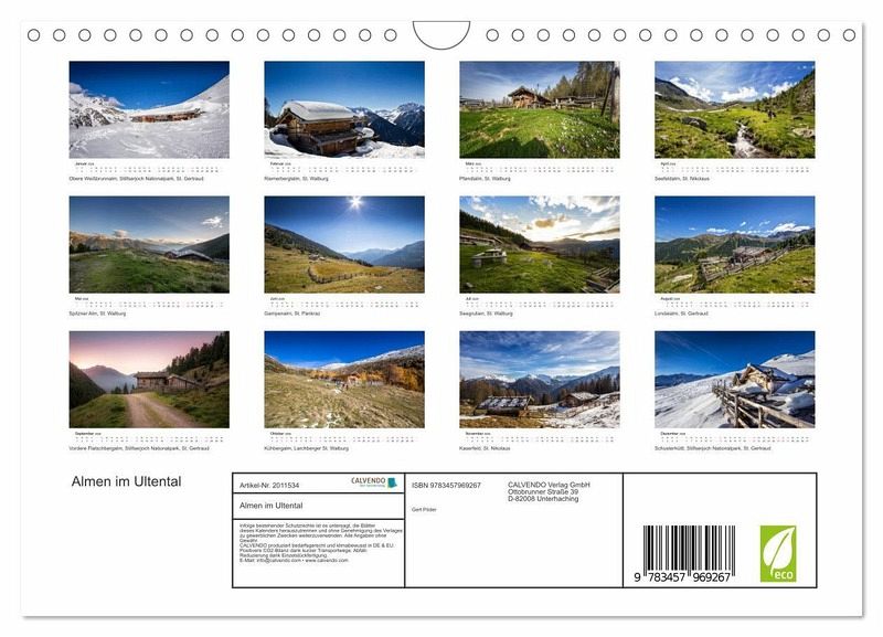 QUALITÄT - Hochwertiger Fotokalender mit 12 wunderschönen Motiven auf lichtbeständigem Bilderdruckpapier, robuste Spiralbindung mit Aufhängebügel.NACHHALTIG - deutliche Abfallreduzierung durch bedarfsgerechte Einzelstückfertigung, umweltfreundliches FSC-zertifiziertes Papier, Produktion in Deutschland, klimabewusste Logistik.PERFEKTES GESCHENK - Kalender für Freunde und Familie, für Kinder und Erwachsene, jung und alt, zu Weihnachten, Geburtstag oder zwischendurch.VIELFALT - Bildkalender in verschiedenen Formaten, z.B. DIN A5, DIN A4, DIN A3 sowie DIN A2. Ob Naturmotiv, Gemälde oder Fotos, ideal für ein persönliches Wohlfühlambiente.Ein Auszug der schönsten und urigsten Almen im Ultental von Autor(in): Gert Pöder