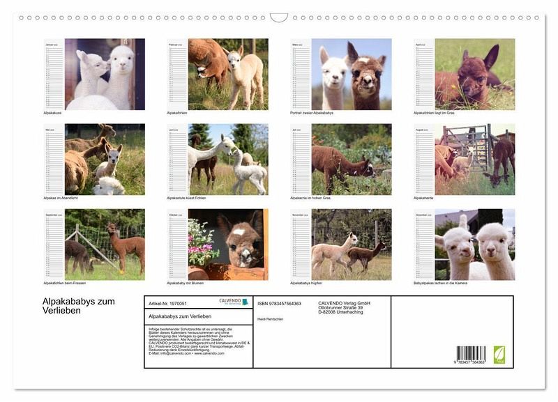 QUALITÄT - Hochwertiger Fotokalender mit 12 wunderschönen Motiven auf lichtbeständigem Bilderdruckpapier, robuste Spiralbindung mit Aufhängebügel.NACHHALTIG - deutliche Abfallreduzierung durch bedarfsgerechte Einzelstückfertigung, umweltfreundliches FSC-zertifiziertes Papier, Produktion in Deutschland, klimabewusste Logistik.PERFEKTES GESCHENK - Kalender für Freunde und Familie, für Kinder und Erwachsene, jung und alt, zu Weihnachten, Geburtstag oder zwischendurch.VIELFALT - Bildkalender in verschiedenen Formaten, z.B. DIN A5, DIN A4, DIN A3 sowie DIN A2. Ob Naturmotiv, Gemälde oder Fotos, ideal für ein persönliches Wohlfühlambiente.Süße Alpakafohlen in Aktion von Autor(in): Heidi Rentschler