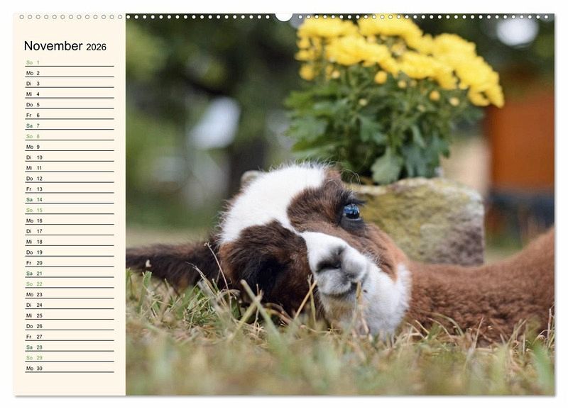 Endecken sie Alpakas mit den verschiedensten Blumenarten. Wer Alpakas und Blumen liebt, für den ist dieser Kalender unumgänglich. Dieser Kalender kann auch wunderbar als Geschenk genutzt werden.