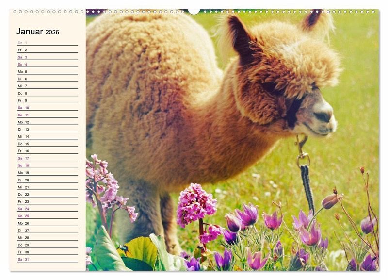 Endecken sie Alpakas mit den verschiedensten Blumenarten. Wer Alpakas und Blumen liebt, für den ist dieser Kalender unumgänglich. Dieser Kalender kann auch wunderbar als Geschenk genutzt werden.