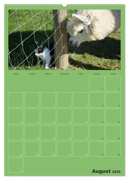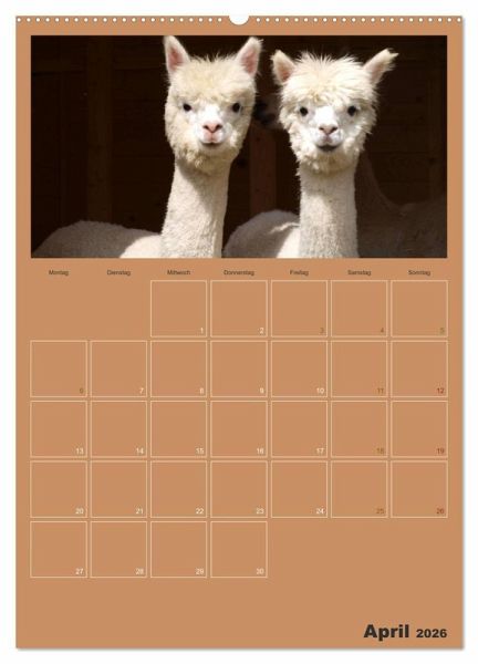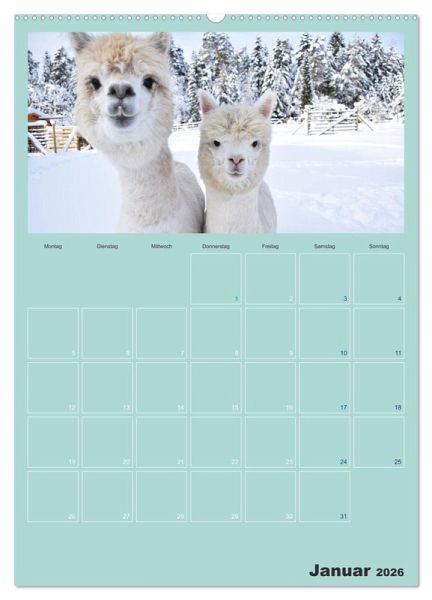 Egal ob Fohlen oder ausgewachsenes Alpaka: Mit ihrer positiven Ausstrahlung wirken sie beruhigend auf Menschen. Bringen Sie sich dieses Feeling in Ihre Wohnung durch die Bilder dieser süßen, ruhigen Tiere und halten Sie wichtige Termine in diesem Planer fest.