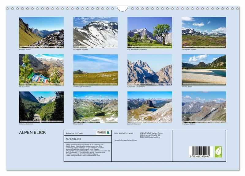 QUALITÄT - Hochwertiger Fotokalender mit 12 wunderschönen Motiven auf lichtbeständigem Bilderdruckpapier, robuste Spiralbindung mit Aufhängebügel.NACHHALTIG - deutliche Abfallreduzierung durch bedarfsgerechte Einzelstückfertigung, umweltfreundliches FSC-zertifiziertes Papier, Produktion in Deutschland, klimabewusste Logistik.PERFEKTES GESCHENK - Kalender für Freunde und Familie, für Kinder und Erwachsene, jung und alt, zu Weihnachten, Geburtstag oder zwischendurch.VIELFALT - Bildkalender in verschiedenen Formaten, z.B. DIN A5, DIN A4, DIN A3 sowie DIN A2. Ob Naturmotiv, Gemälde oder Fotos, ideal für ein persönliches Wohlfühlambiente.Berg- und Alpen-Blick-Panorama von Autor(in): Fotografin Schwarzfischer Miriam