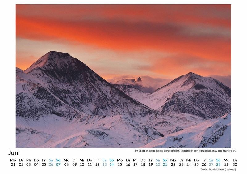 Entdecken Sie die majestätische Schönheit der Alpen das ganze Jahr über mit unserem exklusiven Wandkalender "Alpenansichten". Lassen Sie sich Monat für Monat von atemberaubenden Berglandschaften verzaubern - von schneebedeckten Gipfeln bis hin zu idyllischen Almwiesen. Jedes der 12 sorgfältig ausgewählten Motive wurde auf hochwertigem, lichtbeständigem Bilderdruckpapier gedruckt, um die Farbenpracht der Natur perfekt zur Geltung zu bringen. Gedruckt in Deutschland auf FSC-zertifiziertem Papier, vereint dieser Kalender Nachhaltigkeit und höchste Qualität. Holen Sie sich ein Stück Alpenromantik nach Hause - ideal auch als Geschenk für Naturliebhaber! Hochwertig Erleben Sie ein Jahr voller Eleganz mit unserem Premium-Fotokalender. Jedes der 12 Motive ist auf hochwertigem, lichtbeständigem Bilderdruckpapier gedruckt, um die Lebendigkeit jedes Bildes zu bewahren. Die robuste Spiralbindung gewährleistet Langlebigkeit und einfache Handhabung. Nachhaltig Unser Engagement für die Umwelt spiegelt sich in jedem Exemplar wider. Durch die Produktion auf Abruf reduzieren wir signifikant unseren Abfall. Wir verwenden ausschließlich umweltfreundliches, FSC-zertifiziertes Papier. Stolz gefertigt in Deutschland, achten wir bei unserer Logistik auf Klimaschutz, um unseren ökologischen Fußabdruck zu minimieren. Das ideale Geschenk Dieser Kalender ist das perfekte Präsent für jeden Anlass - ob Weihnachten, Geburtstage oder einfach als liebevolle Aufmerksamkeit zwischendurch. Geeignet für Freunde, Familie, Kinder und Erwachsene gleichermaßen, bereichert er jedes Zuhause mit seiner Vielfalt und Schönheit, unabhängig vom Alter der Beschenkten.