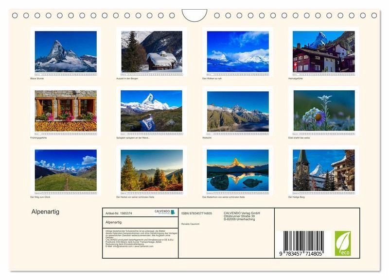 QUALITÄT - Hochwertiger Fotokalender mit 12 wunderschönen Motiven auf lichtbeständigem Bilderdruckpapier, robuste Spiralbindung mit Aufhängebügel.NACHHALTIG - deutliche Abfallreduzierung durch bedarfsgerechte Einzelstückfertigung, umweltfreundliches FSC-zertifiziertes Papier, Produktion in Deutschland, klimabewusste Logistik.PERFEKTES GESCHENK - Kalender für Freunde und Familie, für Kinder und Erwachsene, jung und alt, zu Weihnachten, Geburtstag oder zwischendurch.VIELFALT - Bildkalender in verschiedenen Formaten, z.B. DIN A5, DIN A4, DIN A3 sowie DIN A2. Ob Naturmotiv, Gemälde oder Fotos, ideal für ein persönliches Wohlfühlambiente.Faszination Matterhorn von Autor(in): Renaldo Caumont