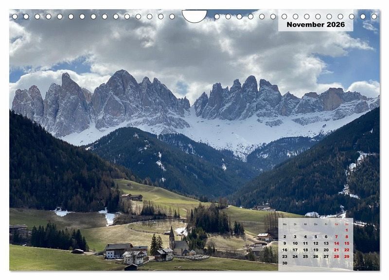 November: Sankt Maddalena mit Geislerspitzen, Italien