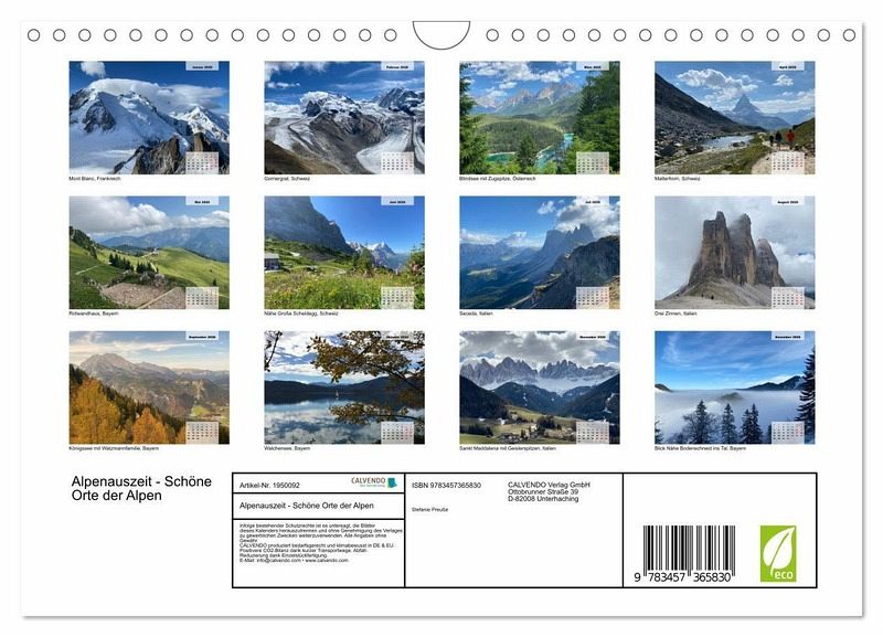 QUALITÄT - Hochwertiger Fotokalender mit 12 wunderschönen Motiven auf lichtbeständigem Bilderdruckpapier, robuste Spiralbindung mit Aufhängebügel.NACHHALTIG - deutliche Abfallreduzierung durch bedarfsgerechte Einzelstückfertigung, umweltfreundliches FSC-zertifiziertes Papier, Produktion in Deutschland, klimabewusste Logistik.PERFEKTES GESCHENK - Kalender für Freunde und Familie, für Kinder und Erwachsene, jung und alt, zu Weihnachten, Geburtstag oder zwischendurch.VIELFALT - Bildkalenderin verschiedenen Formaten, z.B. DIN A5, DIN A4, DIN A3 sowie DIN A2. Ob Naturmotiv, Gemälde oder Fotos, ideal für ein persönliches Wohlfühlambiente.Wandkalender mit Bildern aus den Alpen von Autor(in): Stefanie Preuße