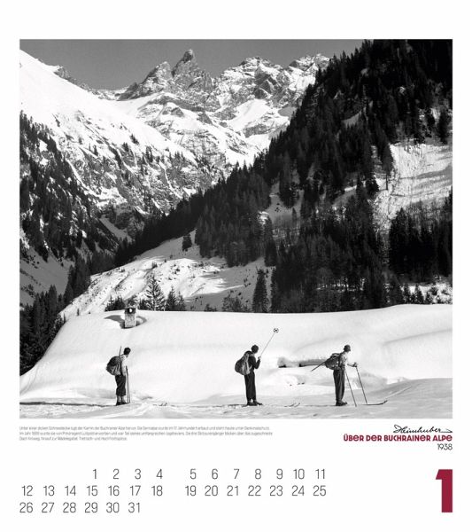 Nostalgische Schwarz-Weiß-Aufnahmen zeigen die Frühzeit des Alpinismus und augenzwinkernde Alltagsszenen aus den Bergen Alpen-Kalender im großen Hochformat: 48x54 cm Hochwertiger Wandkalender mit 200 g/qm Papier und Spiralbindung Auf Papier aus nachhaltiger Forstwirtschaft in Deutschland produziert Leistet einen Beitrag zum Ackermann Firmenwald Deutschsprachiges Kalendarium