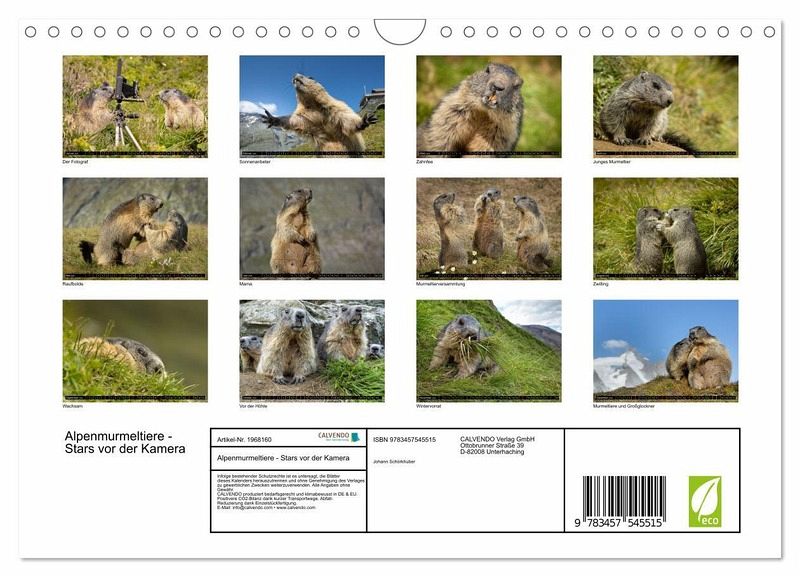 QUALITÄT - Hochwertiger Fotokalender mit 12 wunderschönen Motiven auf lichtbeständigem Bilderdruckpapier, robuste Spiralbindung mit Aufhängebügel.NACHHALTIG - deutliche Abfallreduzierung durch bedarfsgerechte Einzelstückfertigung, umweltfreundliches FSC-zertifiziertes Papier, Produktion in Deutschland, klimabewusste Logistik.PERFEKTES GESCHENK - Kalender für Freunde und Familie, für Kinder und Erwachsene, jung und alt, zu Weihnachten, Geburtstag oder zwischendurch.VIELFALT - Bildkalender in verschiedenen Formaten, z.B. DIN A5, DIN A4, DIN A3 sowie DIN A2. Ob Naturmotiv, Gemälde oder Fotos, ideal für ein persönliches Wohlfühlambiente.Das Murmeltier, der Tunnelingenieur in den Alpen von Autor(in): Johann Schörkhuber