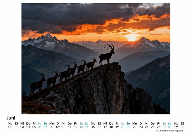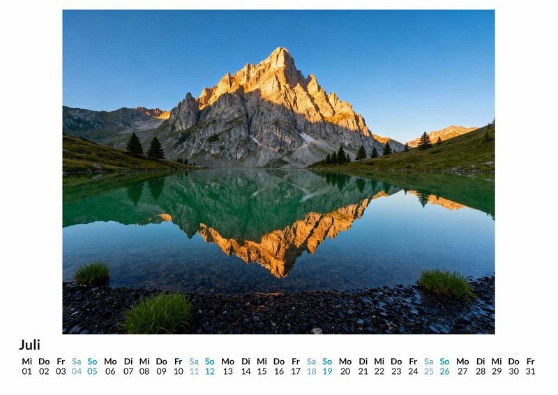 Wenn die ersten Sonnenstrahlen die Gipfel küssen und Wolkenfelder dramatisch durch die Täler ziehen, offenbart sich die wahre Seele der Alpen. Der Kalender "Alpenpanorama & Bergwelten" fängt genau diese Momente ein und bringt die monumentale Schönheit der Bergmassive in zwölf eindrucksvollen Bildern nach Hause. Der Kalender ist optimal geeignet: * Für alle, die die Faszination der Berge im Alltag spüren möchten. * Als stilvoller Wandschmuck für das Büro oder die eigenen vier Wände. * Als besondere Geschenkidee für Wanderer, Alpinisten und Naturliebhaber. Jeder Monat präsentiert eine neue, kraftvolle Szenerie. Von schroffen Felsformationen im gleißenden Mittagslicht über nebelverhangene Seen bis hin zu schneebedeckten Graten im Winter. Diese Aufnahmen wurden durch die Synthese von Daten und kreativen Algorithmen erschaffen, um die Essenz der Alpen neu zu interpretieren. Die Kompositionen zeigen die Bergwelt in ihrer ganzen Vielfalt und Erhabenheit. Beim Kauf dieses Kalenders kann man Folgendes erwarten: * Zwölf sorgfältig ausgewählte Monatsmotive der Alpen. * Ein praktisches Kalendarium mit Raum für persönliche Eintragungen. * Ein Deckblatt, das eine Vorschau auf alle Bilder des Jahres gibt. Der Kalender "Alpenpanorama & Bergwelten" ist eine Hommage an die Natur und ein beständiger Begleiter durch das Jahr. Eine Einladung, die vielfältigen Stimmungen der Alpen Monat für Monat neu zu erleben. Es lohnt sich, die zwölf Perspektiven dieses Dauerbrenners zu entdecken.