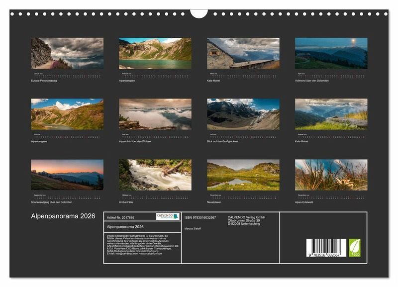 QUALITÄT - Hochwertiger Fotokalender mit 12 wunderschönen Motiven auf lichtbeständigem Bilderdruckpapier, robuste Spiralbindung mit Aufhängebügel.NACHHALTIG - deutliche Abfallreduzierung durch bedarfsgerechte Einzelstückfertigung, umweltfreundliches FSC-zertifiziertes Papier, Produktion in Deutschland, klimabewusste Logistik.PERFEKTES GESCHENK - Kalender für Freunde und Familie, für Kinder und Erwachsene, jung und alt, zu Weihnachten, Geburtstag oder zwischendurch.VIELFALT - Bildkalender in verschiedenen Formaten, z.B. DIN A5, DIN A4, DIN A3 sowie DIN A2. Ob Naturmotiv, Gemälde oder Fotos, ideal für ein persönliches Wohlfühlambiente.Osttirol Impressionen von Autor(in): Marcus Sielaff