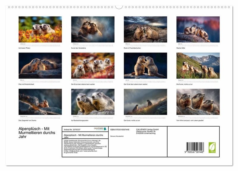 Lernen Sie die wahren Meister der Gelassenheit kennen: Murmeltiere, wie Sie sie noch nie gesehen haben - flauschig, frech und philosophisch. Dieser KI-generierte Kalender bringt jeden Monat ein neues Highlight: mal witzig, mal weise, immer mit Haltung. Für alle, die lieber pfeifen als hetzen und sich mit Nagerpoesie eine Auszeit gönnen wollen. Ein Jahr mit Tiefgang, Pelz und Pointen.