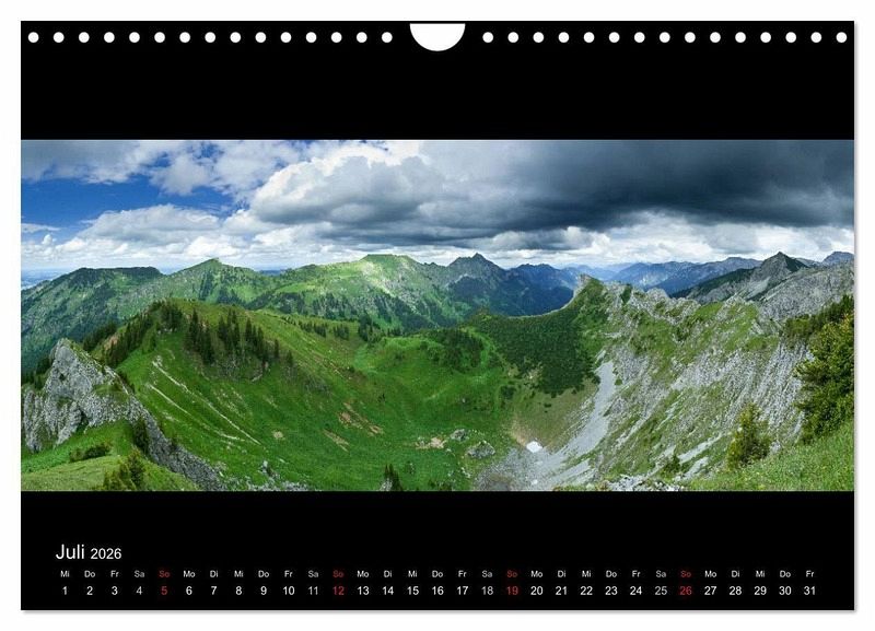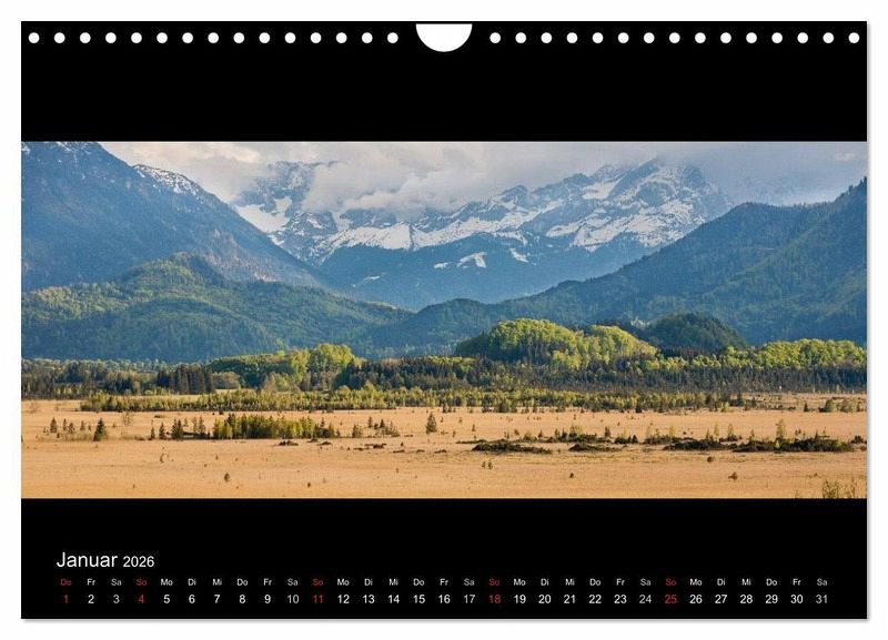 Panoramen von den schönsten Ecken zwischen Lech und Isar. Der Kalender zeigt Aufnahmen vom Murnauer Moos, Ahornboden, Zugspitzgebiet, Ammergauer Alpen, Walchensee, Partnachklamm und vielem mehr.