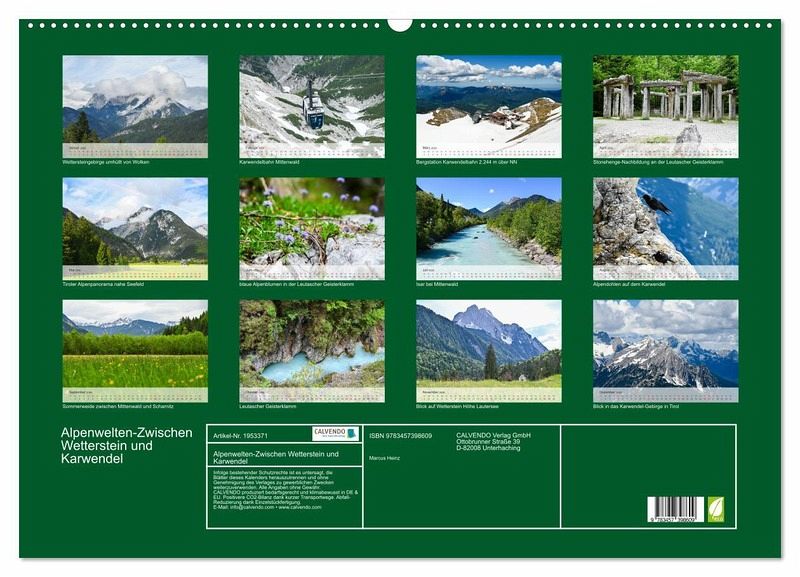 QUALITÄT - Hochwertiger Fotokalender mit 12 wunderschönen Motiven auf lichtbeständigem Bilderdruckpapier, robuste Spiralbindung mit Aufhängebügel.NACHHALTIG - deutliche Abfallreduzierung durch bedarfsgerechte Einzelstückfertigung, umweltfreundliches FSC-zertifiziertes Papier, Produktion in Deutschland, klimabewusste Logistik.PERFEKTES GESCHENK - Kalender für Freunde und Familie, für Kinder und Erwachsene, jung und alt, zu Weihnachten, Geburtstag oder zwischendurch.VIELFALT - Bildkalender in verschiedenen Formaten, z.B. DIN A5, DIN A4, DIN A3 sowie DIN A2. Ob Naturmotiv, Gemälde oder Fotos, ideal für ein persönliches Wohlfühlambiente.Naturmotive aus der Alpenregion Mittenwald und Tirol von Autor(in): M. Heinz