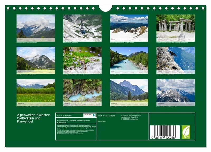 QUALITÄT - Hochwertiger Fotokalender mit 12 wunderschönen Motiven auf lichtbeständigem Bilderdruckpapier, robuste Spiralbindung mit Aufhängebügel.NACHHALTIG - deutliche Abfallreduzierung durch bedarfsgerechte Einzelstückfertigung, umweltfreundliches FSC-zertifiziertes Papier, Produktion in Deutschland, klimabewusste Logistik.PERFEKTES GESCHENK - Kalender für Freunde und Familie, für Kinder und Erwachsene, jung und alt, zu Weihnachten, Geburtstag oder zwischendurch.VIELFALT - Bildkalender in verschiedenen Formaten, z.B. DIN A5, DIN A4, DIN A3 sowie DIN A2. Ob Naturmotiv, Gemälde oder Fotos, ideal für ein persönliches Wohlfühlambiente.Naturmotive aus der Alpenregion Mittenwald und Tirol von Autor(in): M. Heinz