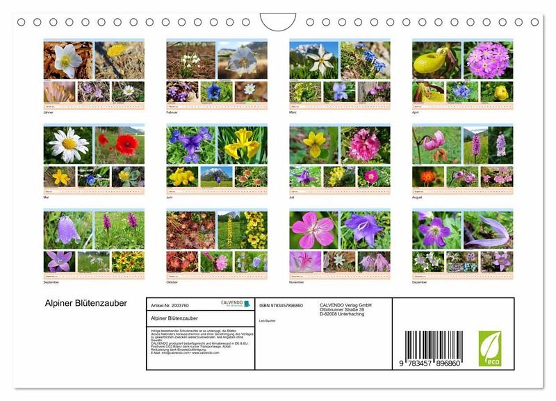 QUALITÄT - Hochwertiger Fotokalender mit 12 wunderschönen Motiven auf lichtbeständigem Bilderdruckpapier, robuste Spiralbindung mit Aufhängebügel.NACHHALTIG - deutliche Abfallreduzierung durch bedarfsgerechte Einzelstückfertigung, umweltfreundliches FSC-zertifiziertes Papier, Produktion in Deutschland, klimabewusste Logistik.PERFEKTES GESCHENK - Kalender für Freunde und Familie, für Kinder und Erwachsene, jung und alt, zu Weihnachten, Geburtstag oder zwischendurch.VIELFALT - Bildkalender in verschiedenen Formaten, z.B. DIN A5, DIN A4, DIN A3 sowie DIN A2. Ob Naturmotiv, Gemälde oder Fotos, ideal für ein persönliches Wohlfühlambiente.Die Vielfalt und Schönheit der alpenländischen Blütenpracht von Autor(in): Leo Bucher
