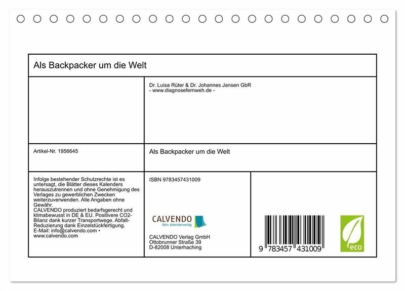 QUALITÄT - Hochwertiger Fotokalender mit 12 wunderschönen Motiven auf lichtbeständigem Bilderdruckpapier, robuste Spiralbindung.NACHHALTIG - deutliche Abfallreduzierung durch bedarfsgerechte Einzelstückfertigung, umweltfreundliches FSC-zertifiziertes Papier, Produktion in Deutschland, klimabewusste Logistik.PERFEKTES GESCHENK - Kalender für Freunde und Familie, für Kinder und Erwachsene, jung und alt, zu Weihnachten, Geburtstag oder zwischendurch.VIELFALT - Bildkalender in verschiedenen Formaten, z.B. DIN A5, DIN A4, DIN A3 sowie DIN A2. Ob Naturmotiv, Gemälde oder Fotos, ideal für ein persönliches Wohlfühlambiente.Es warten unzählige Abenteuer auf dich, also pack deinen Rucksack und los geht's auf eine Reise um die Welt. von Autor(in): Luisa Rüter