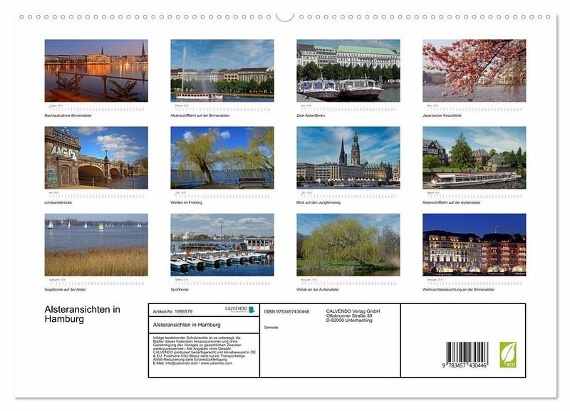 PREMIUM-LINIE - Brillanter Fotokalender mit 12 wunderschönen Motiven, Kunstdruck in Hochglanz in Museumsqualität.QUALITÄT - edle Materialien, stabile Rückwand mit 2 innovativen Einstecktaschen für eine optimale Präsentation an der Wand.NACHHALTIG - deutliche Abfallreduzierung durch bedarfsgerechte Einzelstückfertigung, umweltfreundliches FSC-zertifiziertes Papier, Produktion in Deutschland, klimabewusste Logistik.PERFEKTES GESCHENK - Kalender für Freunde und Familie, für Kinder und Erwachsene, jung und alt, zu Weihnachten, Geburtstag oder zwischendurch.Fotomotive von Binnen- und Außenalster von Autor(in): Sarnade