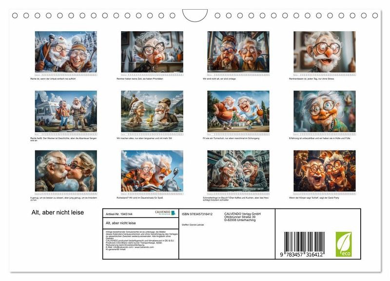 Ob wilde Abenteuer im Urlaub, charmante Eskapaden im Café oder lustige Begegnungen im Alltag. Dieser Kalender ist voller humorvoller Einblicke in das Leben der Generation, die den Ruhestand nicht als Endstation, sondern als Start in eine neue, spannende Zeit sieht. Ein Muss für alle, die über das Älterwerden herzlich lachen können! Alle hier gezeigten Bilder wurden mit Sorgfalt, Liebe und mit Hilfe einer KI generiert. Abschließend werden sie mit Bildbearbeitungsprogrammen überarbeitet und in den Kalender eingefügt.